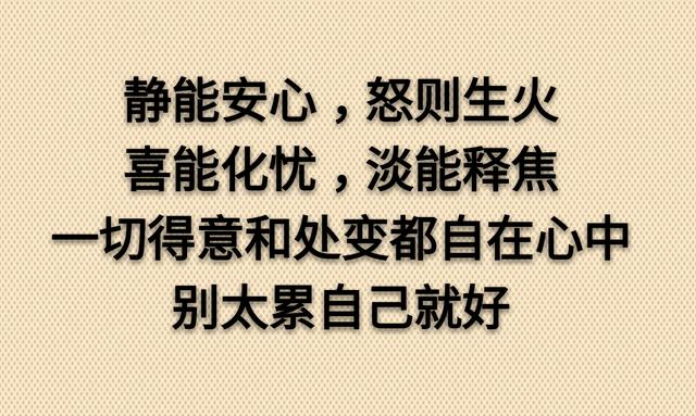 静能安心,怒则生火,喜能化忧,淡能释焦