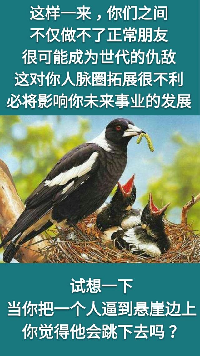 人生在世,做人做事不要赶尽杀绝,要给人留一条活路。