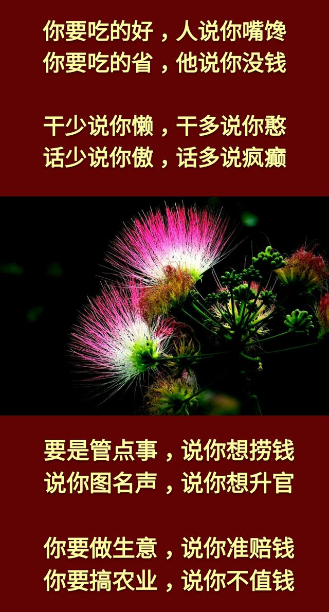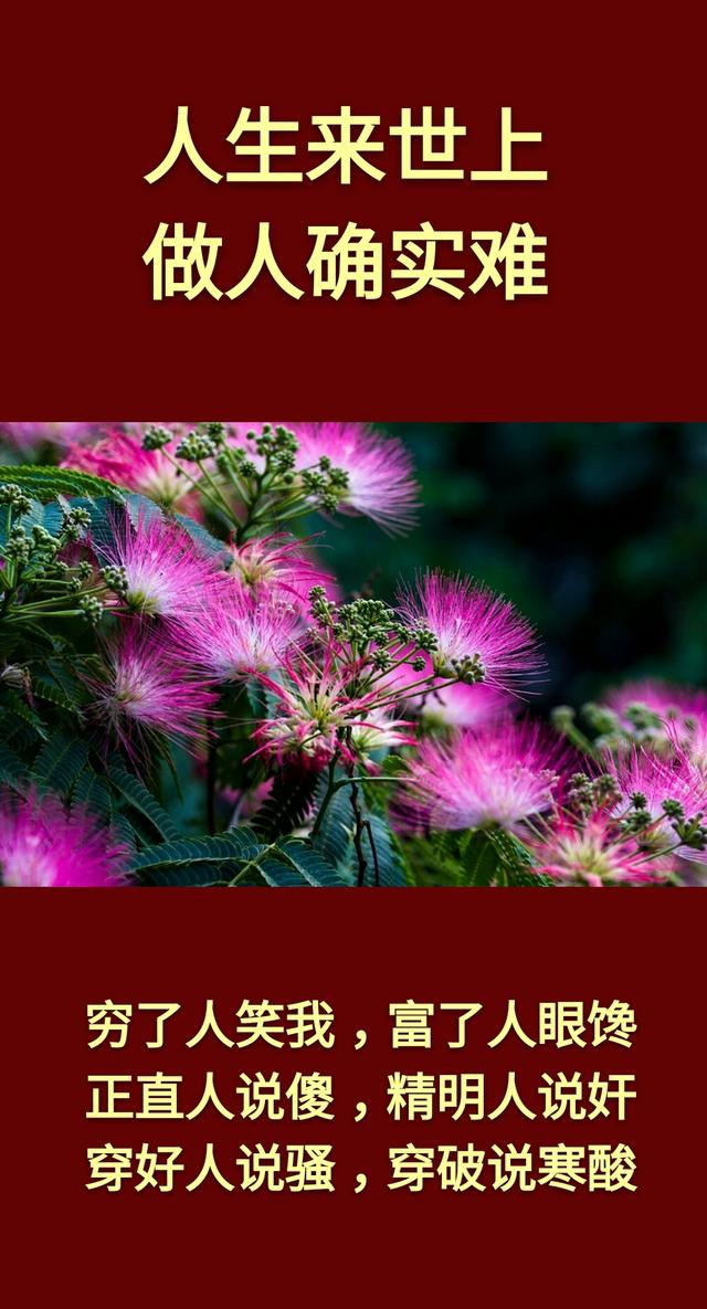 人生在世:别把自己看得太高,这个世界离开谁都行;也别把自己看得太低,这世上你独一无二。