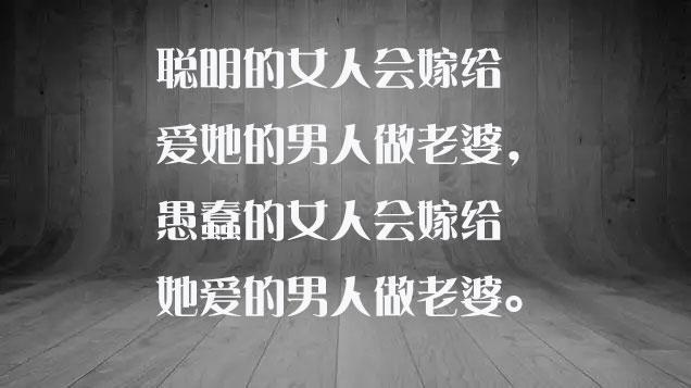 聪明的女性会嫁给爱她的男子做老婆,愚笨的女性会嫁给她爱的男子做老婆。