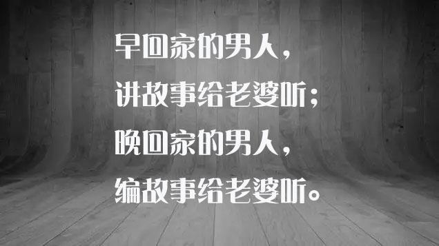 早回家的男子,讲故事给老婆听;晚回家的男子,编故事给老婆听。