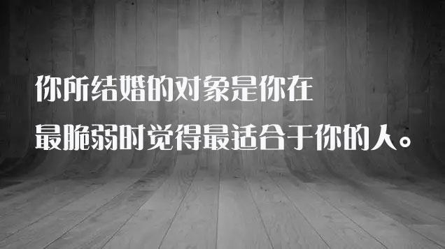 你所成婚的对象是你在最软弱时觉得最适合于你的人。