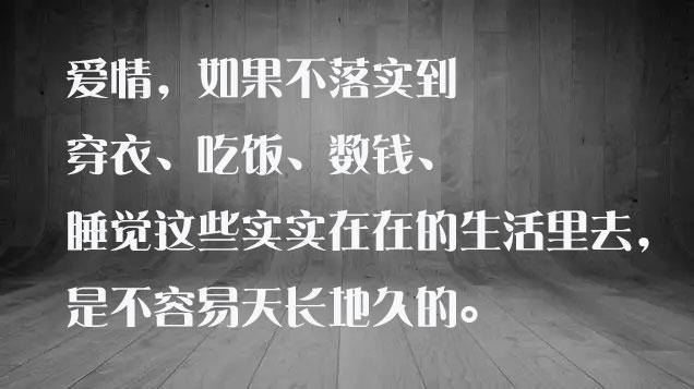 爱情,假如不落实到穿衣、就餐、数钱、睡觉这些实实在在的日子里去,是不容易海枯石烂的。